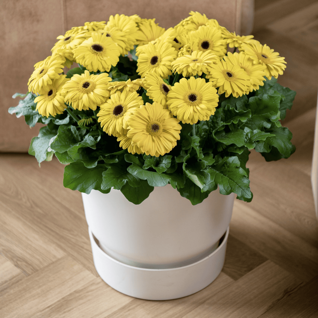 ¡La primera Gerbera jamesonii en maceta genéticamente uniforme del mercado! Produce 3 flores a la primera. Tiene una muy buena vida útil y, si se cultiva en las condiciones adecuadas, puede producir más de 10 flores.